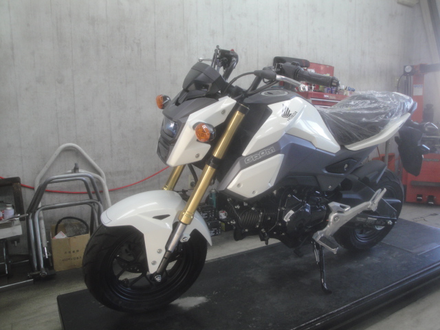 ホンダ グロムを納車させていただきます。 カラーは「パールヒマラヤズホワイト」! デュアルLEDヘッドライト等、旧モデルよりも カッコよくなりました♪ ご覧の皆様、ホンダ車も当店にご相談を(^^)
