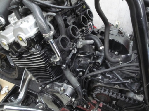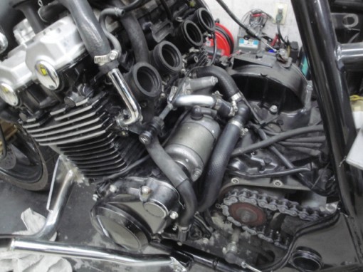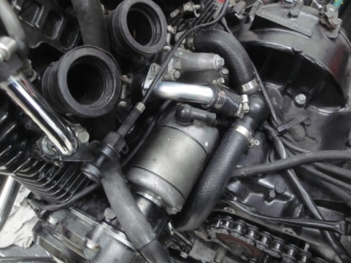 CB400系水冷エンジンは、シリンダー背面部左右のウオーターパイプOリングが