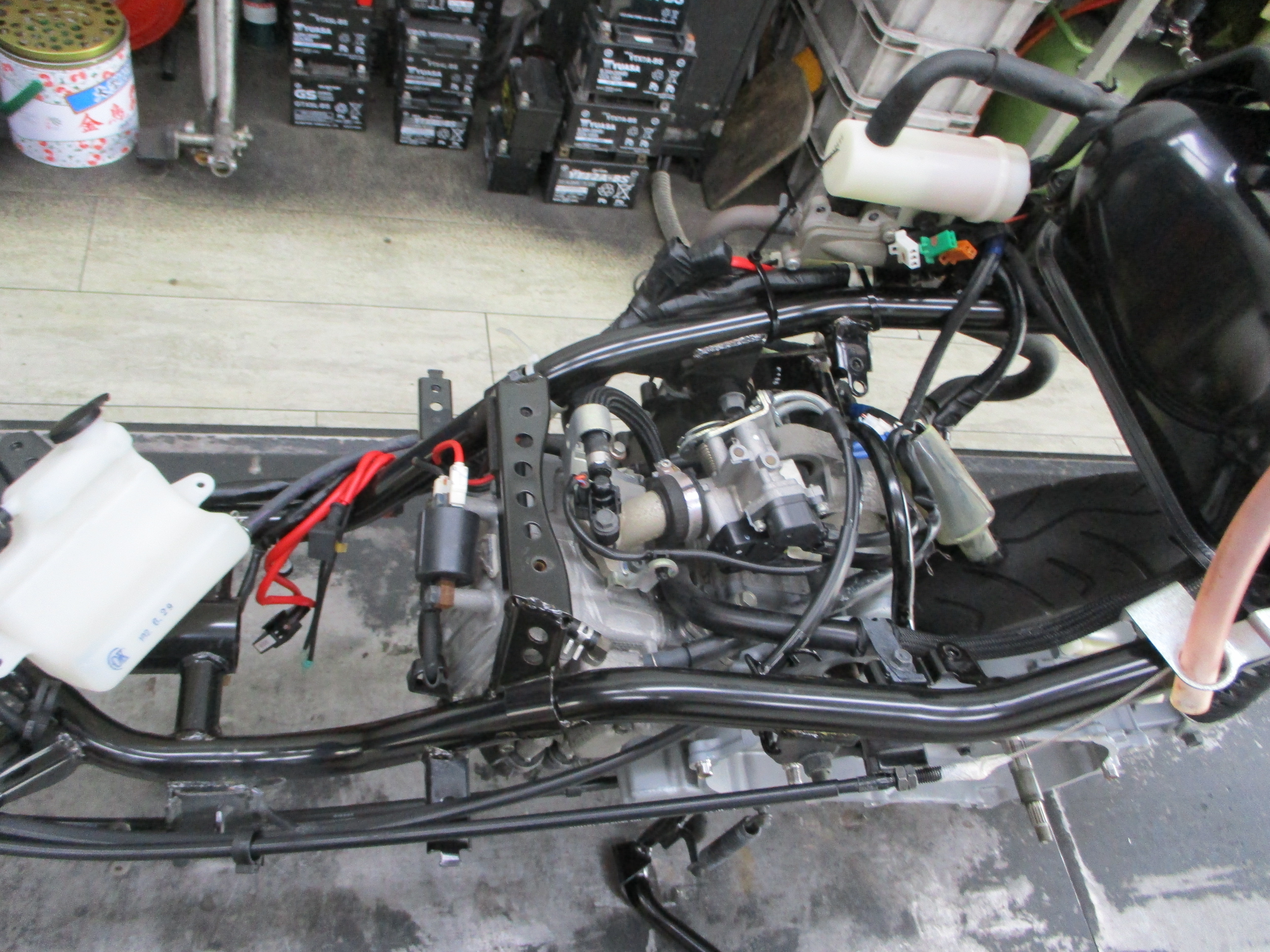 入庫時にカウル類を外して洗車・各部の
