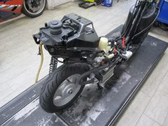 入庫時にカウル類を外して洗車・各部の
