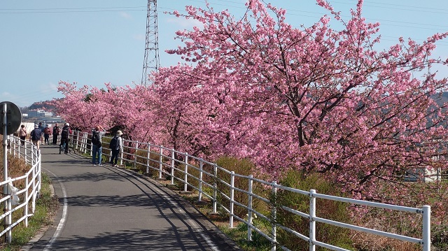 河津桜(と思います)が満開。