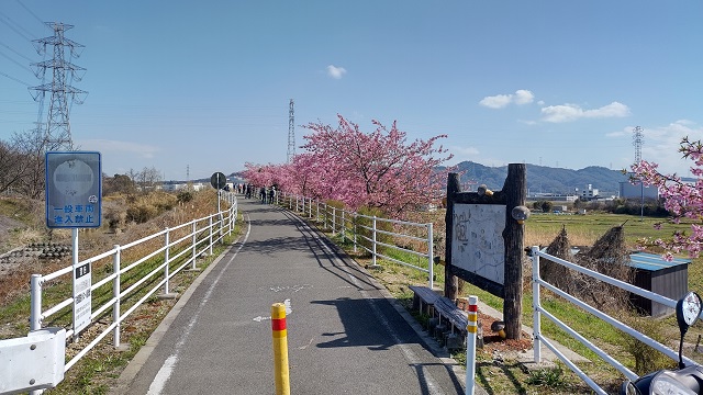 その山田池公園の横を流れる穂谷川沿いの遊歩道。