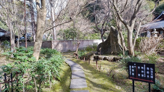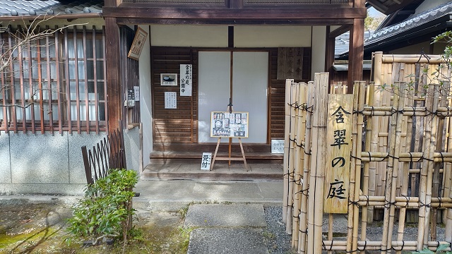 大石内蔵助が建てた茶室含翠軒。 ここで討ち入り(仇討ち)の密議をしたと言われています。 扁額の「含翠」も内蔵助の筆。
