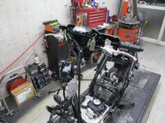 入庫時にカウル類を外して洗車・各部の