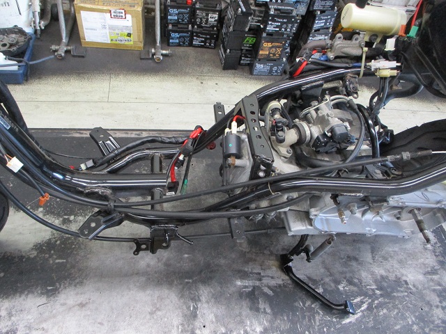 入庫時にカウル類を外して洗車・各部の