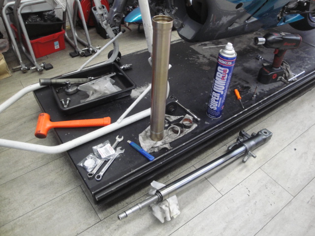 ZX-9RのフロントフォークをOH中。
