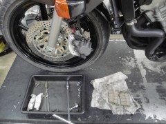 フロントブレーキフルード&フロントブレーキパッド交換。